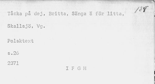 //// - i Ä ... . ,1 . //// /Jf //// Tåcka på dej, Britta, Sanga ä för litta, Skallsjö, Vg. //// Polsktext //// s. 26 2371 //// I F G H . //// ¦ ////