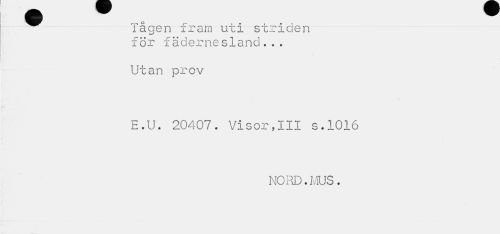 //// Tågen fram uti striden för fädernesland... //// Utan prov //// E.U. 20407. Visor,III s.1016 //// NORD.MUS. ////
