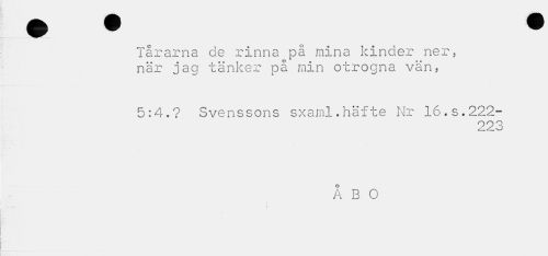 //// Tårarna de rinna på mina kinder ner, när jag tänker på min otrogna vän, //// 5:4.? Svenssons sxaml.häfte Nr 16.s.222- //// 223 //// ÅBO //// ' .• t- ' • ////