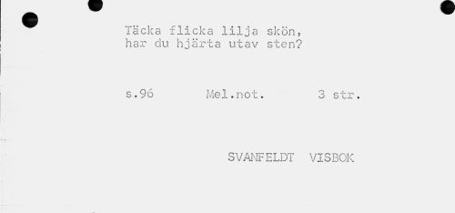 //// läcka flicka lilja skön, har du hjärta utav sten? //// s .96 Mel.not. 3 str. //// - , //// SVANFELDT VISBOK ////
