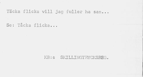 //// Täcka flicka vill jag fuller ha san... Se: Tåcka flicka... //// KB:s SKILLINGTRYCKSREG. ////