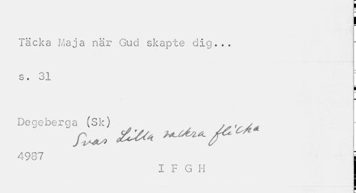 //// ! //// Täcka Maja när Gud skapte dig... s. 31 //// I //// Degeberga (Sk) //// 4987 i //// I F G H ////