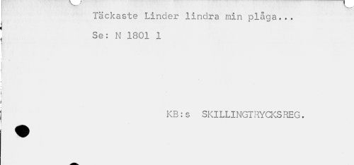 //// Täckaste Linder lindra min plåga... Se: N 1801 1 //// N //// KB:s SKILLINGTRYCKSREG. ////