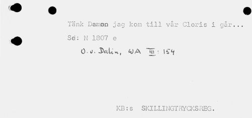 //// Tänk Dajnran jag kom till vår Cloris i går... ^ Sd: N 1807 e //// ö.^.^ctUw, A) A : i^f //// KB:s SKILLINGTRYCKSREG. ////