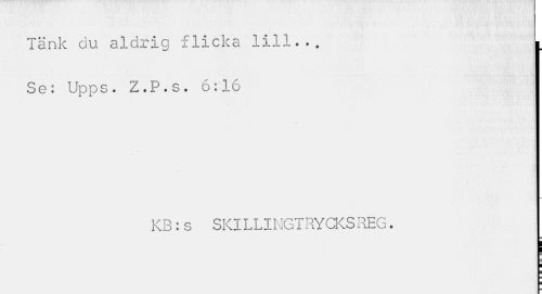 //// Tänk du aldrig flicka lill... Se: Upps. Z.P.s. 6:16 //// KB:s SKILLINGTRYCKSREG. //// r ////