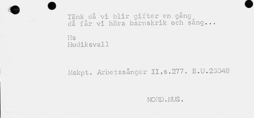 //// Tänk då vi blir gifter en gångo då får vi höra barnskrik och sång... //// Hs //// Hudiksvall //// Mskpt. Arbetssånger II.s.277. E.U.23348 //// NORD.MUS. //// . ^ « ..., ////
