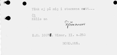 //// Tänk ej.på mig i stormens natt... //// E.U. 1037g. Visor, IX. s.253 //// NORD.MUS. ////