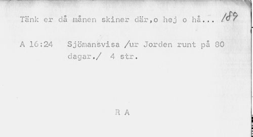 //// Tänk er cla manen skiner där, o hej o ha... m //// A 16:24 Sjömansvisa /ur Jorden runt på 80 //// dagar./ 4 str. //// R A . //// ¦ ////