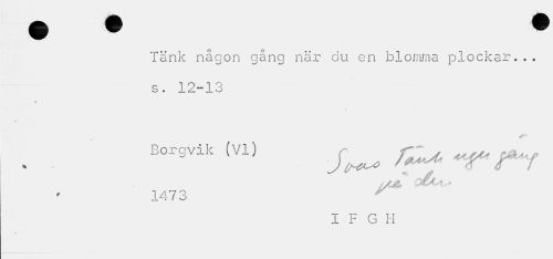 //// Tänk någon gång när du en blomma plockar... s. 12-13 //// . . Borgvik (vl) J^ fc^ //// 1473 y //// I F G H ////