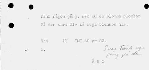 //// 4 //// Tänk någon gång5 när clu en blomma plockar Jfc På den vars liv så föga blommor har. //// 2:4 LT INE 60 nr 83. //// ^ N. J ^ f&ZtA //// c* a //// k B O ////