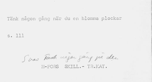 //// Tänk någon gång när du en blomma plockar //// o t //// H-FORS SKILL.- TR.KAT. ////