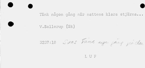 //// länk någon gång när nattens klara stjärna... ® V.Sallerup (Sk) //// t"** //// 3237:18 Si/^S ma'Ö£U //// L U F ////
