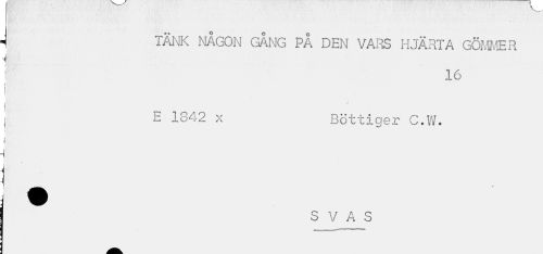 //// < TÄNK NÅGON GÅNG PÅ DEN VARS HJÄRTA GÖMMER //// i 16 //// i //// i //// I £ 1842 x Bottiger C.W. //// S V A S ////
