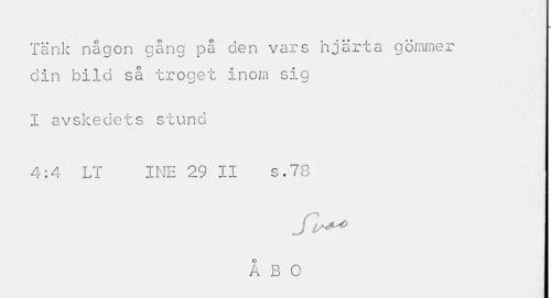 //// Tänk någon gång på den vars hjärta gömmer din bild så troget inom sig //// I avskedets stund //// 4:4 LT INE 29 II s.78 //// ÅBO ////