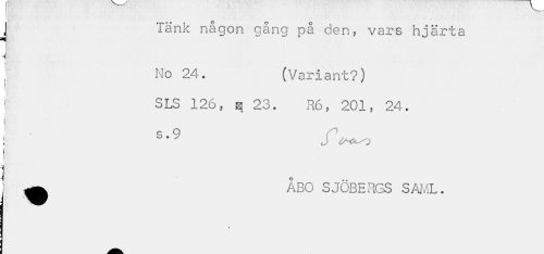 //// I -länk någon gång på den, vars hjärta //// 1 //// J //// No 24. (Variant?) //// SLS 126, q 23. R6, 201, 24. //// i J //// A ÅBO SJÖBERGS SAML. //// * ////