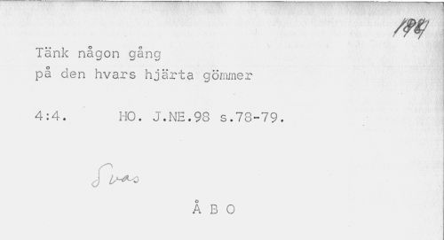 //// W \ //// Tänk någon gång //// på den hvars hjärta gömmer //// » i //// 4:4. HO. J.NE.98 s.78-79. //// ¦ //// C //// d ts-^o //// ÅBO ////