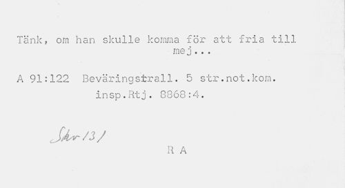 //// Tänk, om han skulle komma för att fria till //// me j . . . //// A 91:122 Beväringstrall. 5 str.not.kom. //// n v^ o p4- A OOAO * A //// insp.atj. OuOO.4, //// jÅ^/3/ //// D A //// ii A ////