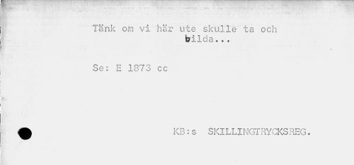 //// V S ¦ <t ¦ -» ^ - - - r — - »• . ^ . _ //// ' - • • ' • ' • //// • • //// Tänk om vi här ute skulle ta och //// bilda... //// \ //// Se: E 1873 cc //// ¦ * //// jaSs' //// KB:s SKILLINGTRYCKS REG. ////