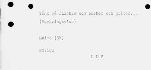 //// Tänk på flickan som smeker och gråter... ^^ (Beväringsvisa) //// Malmö (Sk) 83:165 //// L U F ////
