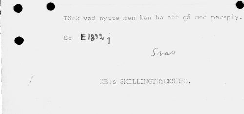 //// Tänk vad nytta man kan ha att gå med paraply. A Se //// Sat-oy* //// KB:s SKILLINGTRYCKSREG. //// | ////