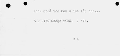 //// Tänk ändå vad man slita får san... //// « //// A 282:10 Skogs-Visa. 7 str. //// . 4c //// R A ////