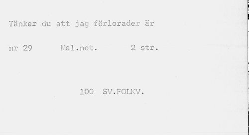 //// Tänker du att jag förlorader är nr 29 Mel.not. 2 str. //// ¦ //// 100 SV.FOLKV. : //// ¦ ////