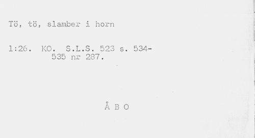 //// J //// Tö, tö, slamber i horn //// 1:26. KO. S.L.S. 523 s. 534- //// 535 nr 287. //// « //// l //// [ //// - //// Å B O //// i ////