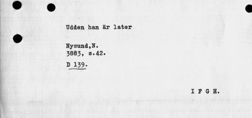 //// Udden han är låter. //// ^ Hysund,BN //// 3883, s.42* //// 3» 139. //// IFGH. //// ¦ ////