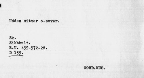 //// -I //// Udden sitter o.sover. Sk. //// Sibbhult. //// E.U. 439-572-28. D 139. //// KOED.MUS. ////