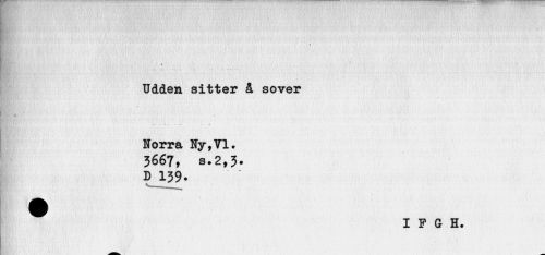 //// „ //// b"' //// ... .. . //// .. ... //// I; - . //// Udden sitter a sover //// .. .> - //// Norra Ny,71. //// 3667, s.2,3. //// D 139. //// I P G H. ////