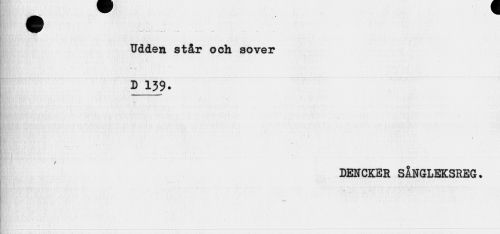 //// Udden står och sover //// D 139. //// IM. i0l — //// / //// DENCKER SÅNGLEKSREG. //// t" ////