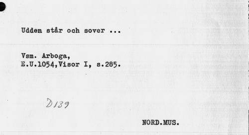 //// t //// i //// t f //// Udden står och sover •*. [ //// . /, < .< k v I //// • l (V' "¦ v i //// • 4 A- ...•• " - - - « //// « //// i //// ;: //// Vsm. Arboga, //// E.U.1054*Visor I, s.285. //// ¦ //// t //// F //// I //// i //// NORD. MUS. //// . . - ... * ...i; ~ T * ~~~7 7 » . „. ~ " | "7" * , . ••, " "T"; ////