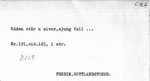 //// % //// i » //// i //// Udden står u sivar,sjung fall ... //// Hr.191»sid.165, 1 str. //// I //// > //// s //// ¦ //// FREDIN,GO TTLÅNDSTOKER. i //// ' ! //// - t i ////