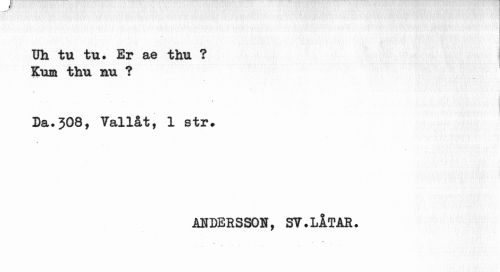 //// Uh tu tu. Er ae thu ? Kum thu mx ? //// • * Da.308, Vallåt, 1 str. //// H //// ASDERSSOH, SY.LÅTAR. ////