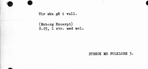 //// ^ w //// Uir sku gå i vall. //// (Moberg Excerpt) S.25, 1 str. med mel. //// DYBECK MS FOLKLORE J>. ////