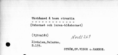 //// Ukshånned å basu strantin (Oxhornet och luren-blåshornet) //// (Björalåt) rfndtUl //// ^^ Älvdalen,Dalarna, //// W s.139. //// STRÖM. ST.VISOR o.RAMSOR. ////