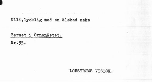 //// v //// I //// Ulli,lycklig med en älskad maka //// Barnet i Örnanästet. Nr.35. //// LÖFSTRÖMS VISBOK. ////