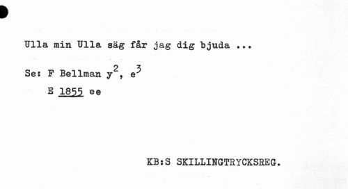 //// p //// Ulla min Ulla säg får jag dig bjuda ... //// 2 //// Se: F Bellman y , e E 1855 ee //// KB:S SKILLINGTRYCKSREG. ////