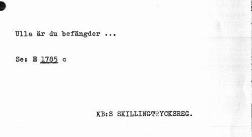 //// r I //// 1 //// Ulla är du befängder //// Se: E 1785 c [ //// ¦f //// C //// i i //// i //// i //// 1 //// ! //// c //// 5 t //// t //// KB:S SKILLINGTRYCKSREG. //// j //// j ////