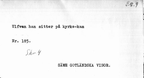 //// , - t. 7 1 //// i ¦ //// Ulfvan han sitter på kyrke-kam //// • : —- . \ //// : //// Nr. 185- //// fat : //// ¦ //// SÄWE GOTLÄNDSKA YISOR. j //// I ////
