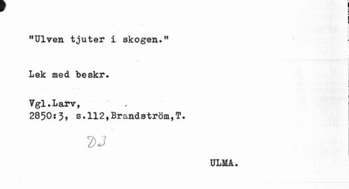 //// w //// f I //// ¦ //// i //// \ //// i i //// l //// "Ulven tjuter i skogen." i //// ¦ - i i //// i I i //// I //// Lek med beskr. //// i //// i //// j //// Ygl.Larv, //// 2850:3, s.112,Brandström,T. //// 2>J //// ULMA. ////