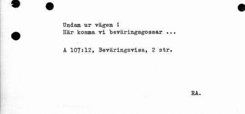 //// Undan ur vägen i ^ Här komma vi beväringsgossar //// A 107:12, Beväringsvisa, 2 str. //// RA. ////