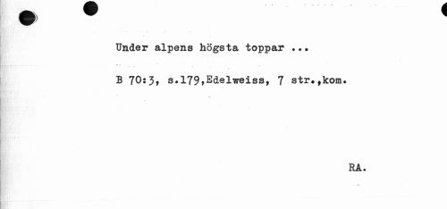 //// i) //// » , Under alpens högsta toppar //// B 70:3* s.l79>Edelweiss, 7 atr#fkom# //// RA. ////