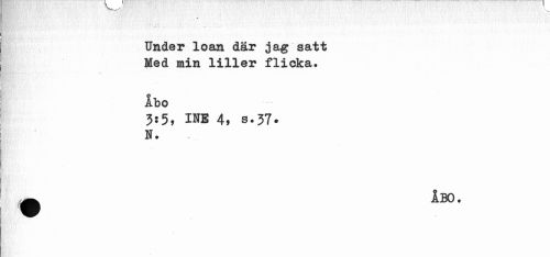 //// Under loan dar jag satt Med min liller flicka. //// Åbo //// 3:5, INB 4, s.37. N. //// ^ ÅBO. ////