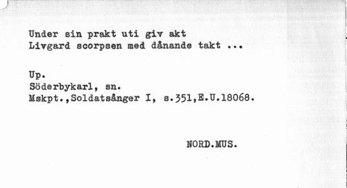 //// Under sin prakt uti giv akt [ //// i //// Livgard scorpsen med dånande takt «.« " j //// I //// ! //// Up. //// Sö de rbykarl, sn. //// Iskpt.»Soldatsånger I, s.351,E.U.18068. j //// i //// : //// | //// i- //// i //// NORD.MUS. //// r //// I ////
