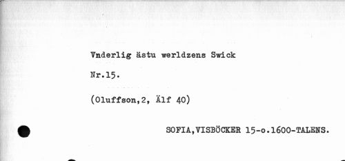 //// I //// i //// Vnderlig ästu werldzens Swick //// Nr.15. //// (Oluffson,2, ilf 40) 0 SOFIA,VISBÖCKEE 15-o.1600-TAL1NS. ////