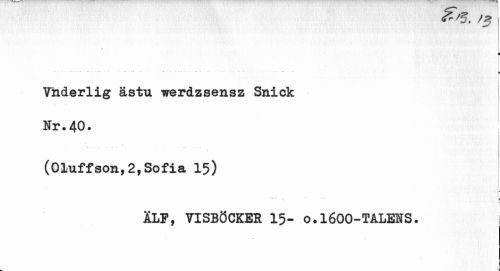 //// Af //// I //// ... ' * ' * ... - • ^ //// Vhderlig ästu werdzsensz Snick Nr.40. //// ! //// v //// (Oluff son, 2,Sofia 15) //// ... . ... ^ ILP, VISBÖCKER 15- o.1600-TALENS. i //// r ////