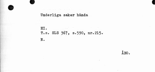//// Underliga saker hända Hl. //// T.s. SLS 367, s.590, nr.215. N. //// ÅBO. //// » ////