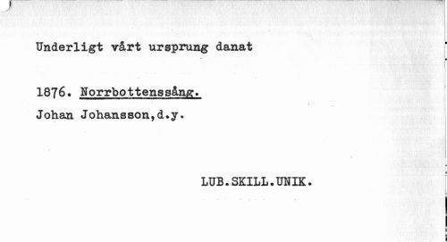 //// Underligt vårt ursprung danat //// i //// k //// I //// ! //// 5 //// ... """ ' " " t //// 1876. Norrbottenssång» Johan Johansson, d*y. //// i i //// » i //// i //// LUB.SKILL.UNIK. //// f C //// F k i ////
