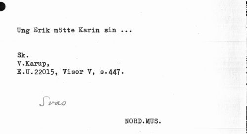 //// r //// f //// Ung Erik mötte Karin sin ... //// Sk. i //// V.Karup, [ //// E.U.22015, Visor V, s.447- f //// i //// i i //// J y-tfU) //// NORD.MUS. //// ! i //// i ////